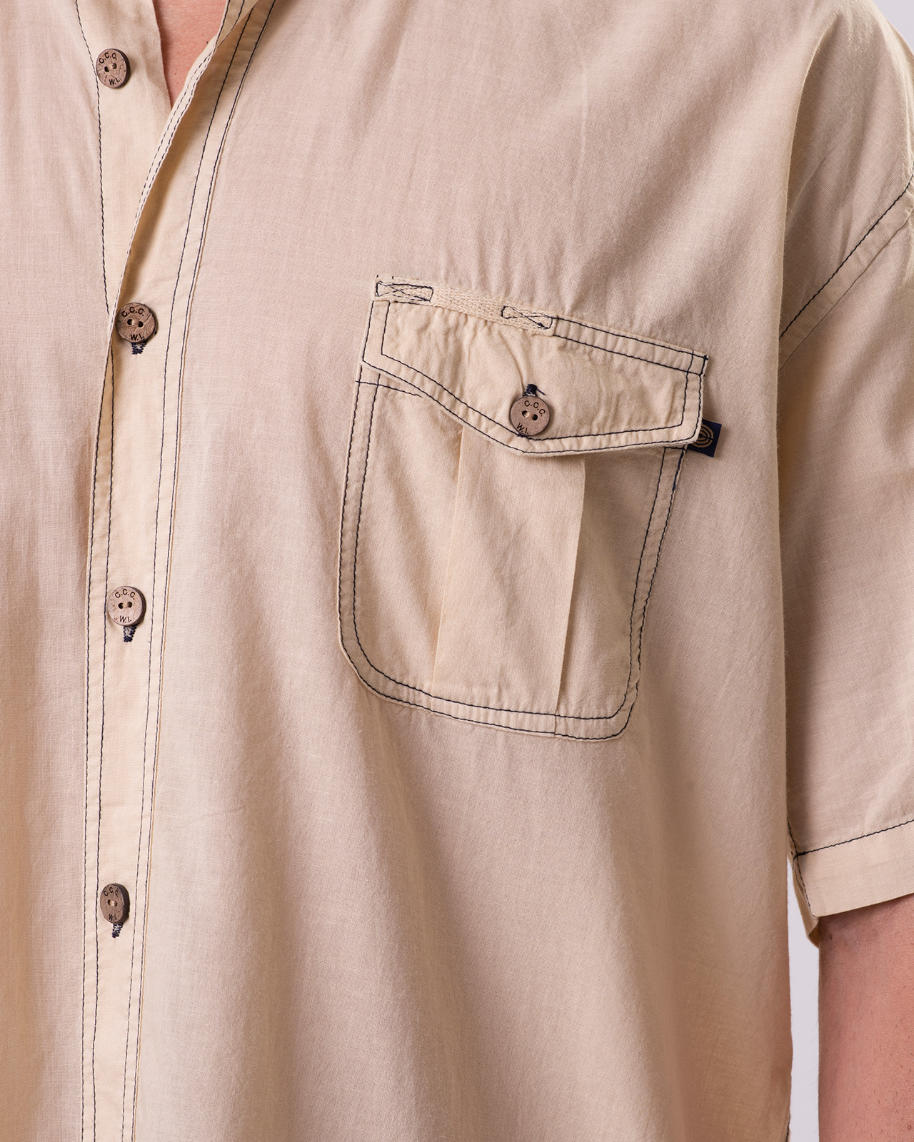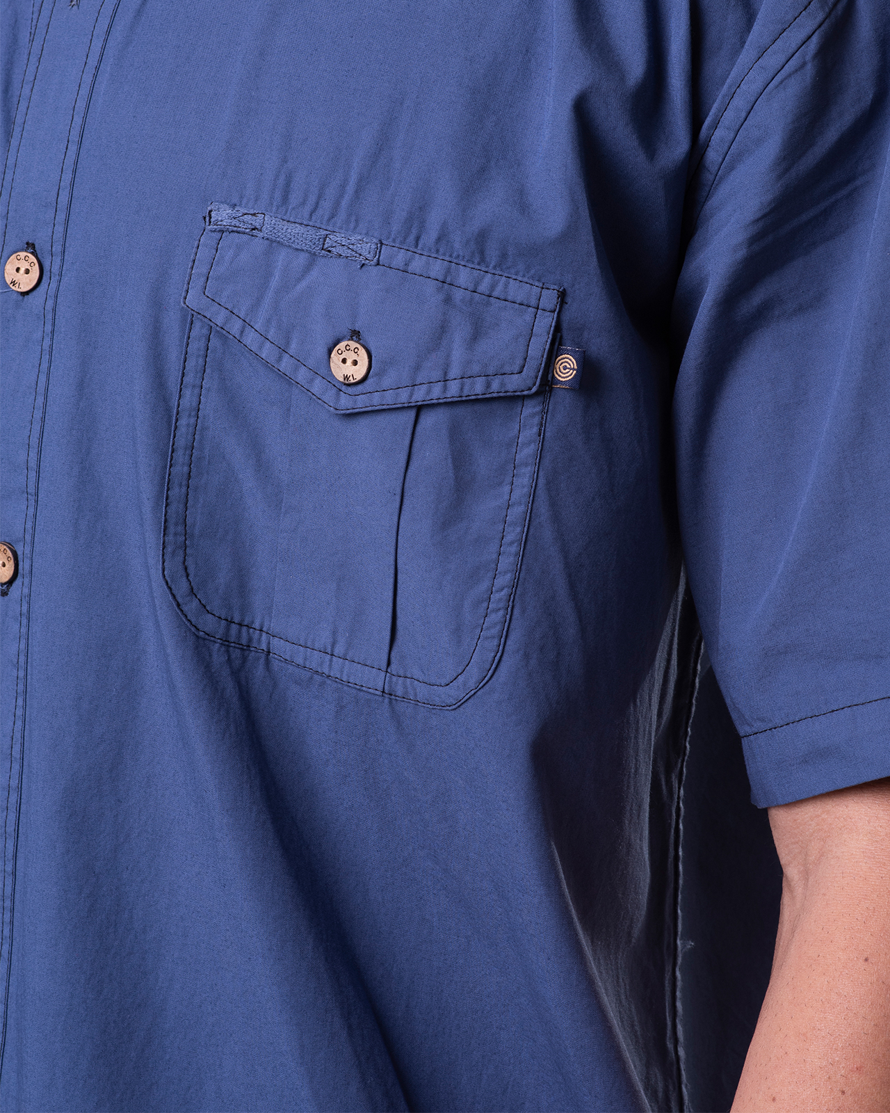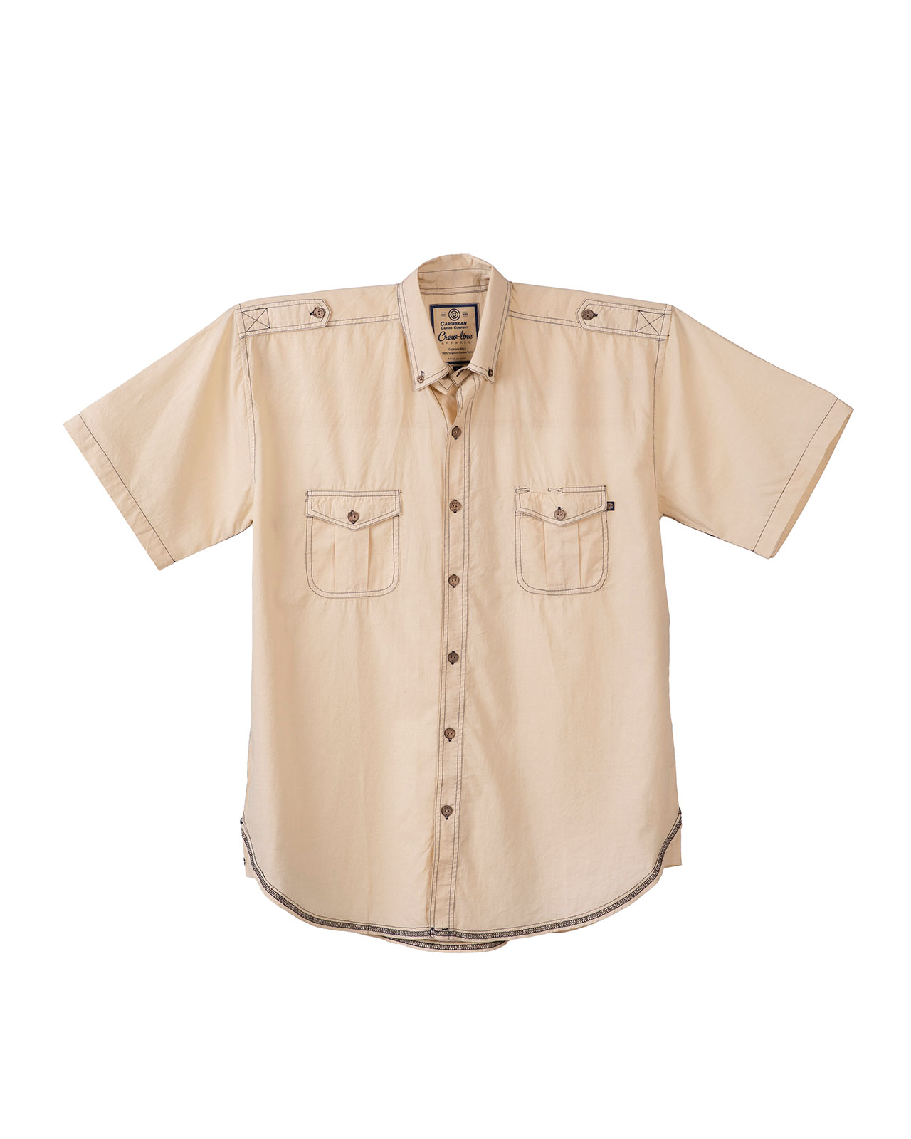 This tropical weight, breathable 100% Mercerized Organic Cotton-Voile fabric is paradise found for daily wear. The mercerization process causes the yarns to swell adding strength to the yarn fiber giving them a high luster. The reactive dyed silicone washed product offers very subtle washed down color tones with slight contrast color stitching effect throughout. The 7-button placket front, button down collar, double shoulder yoke shirts offers epaulets, classic button-down collar, two front chest pockets, split tails and embroidered logo with embossed coconut buttons. We even have a place to hang your shades on the top of the chest pocket!
