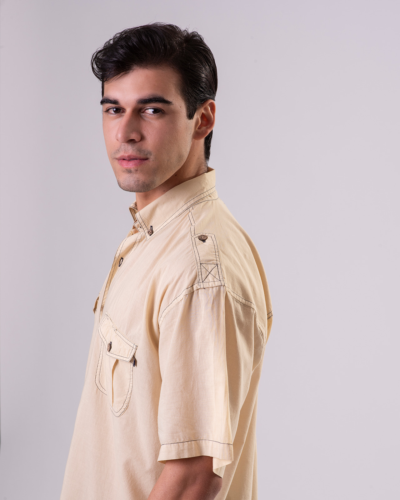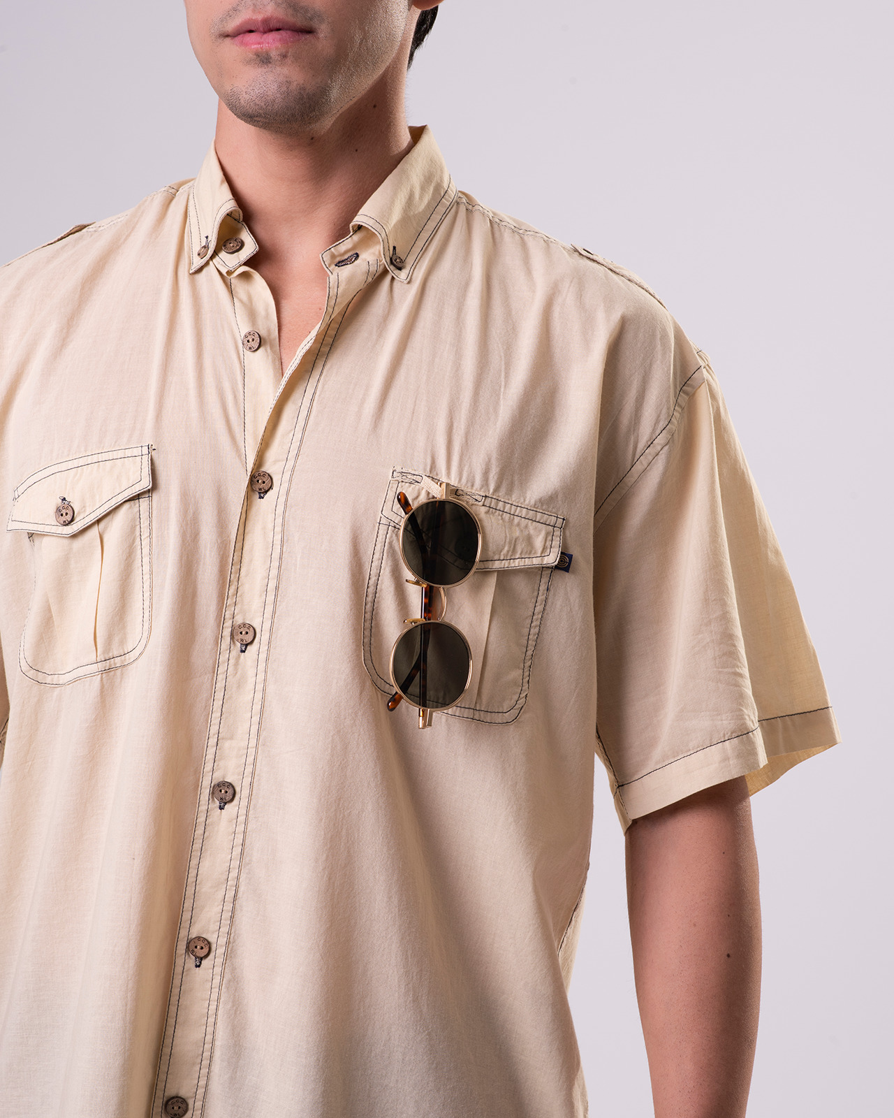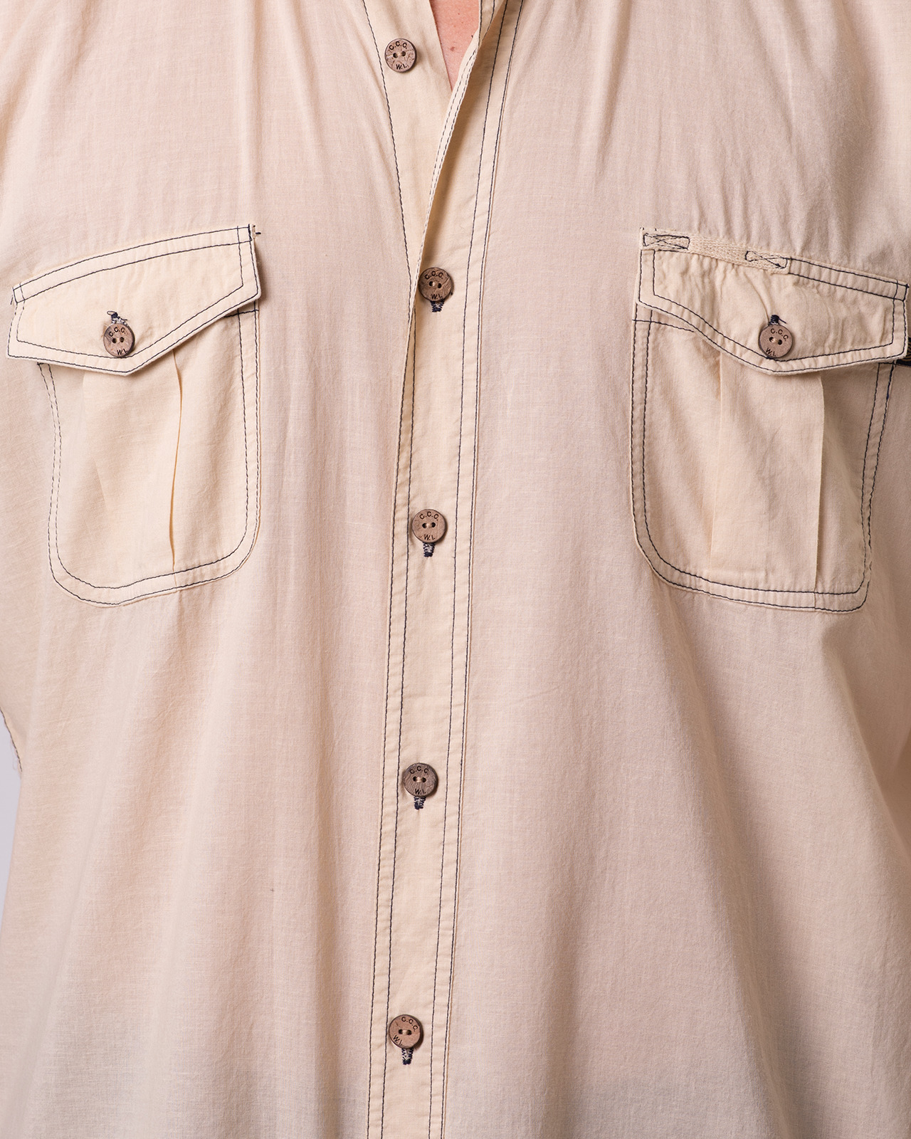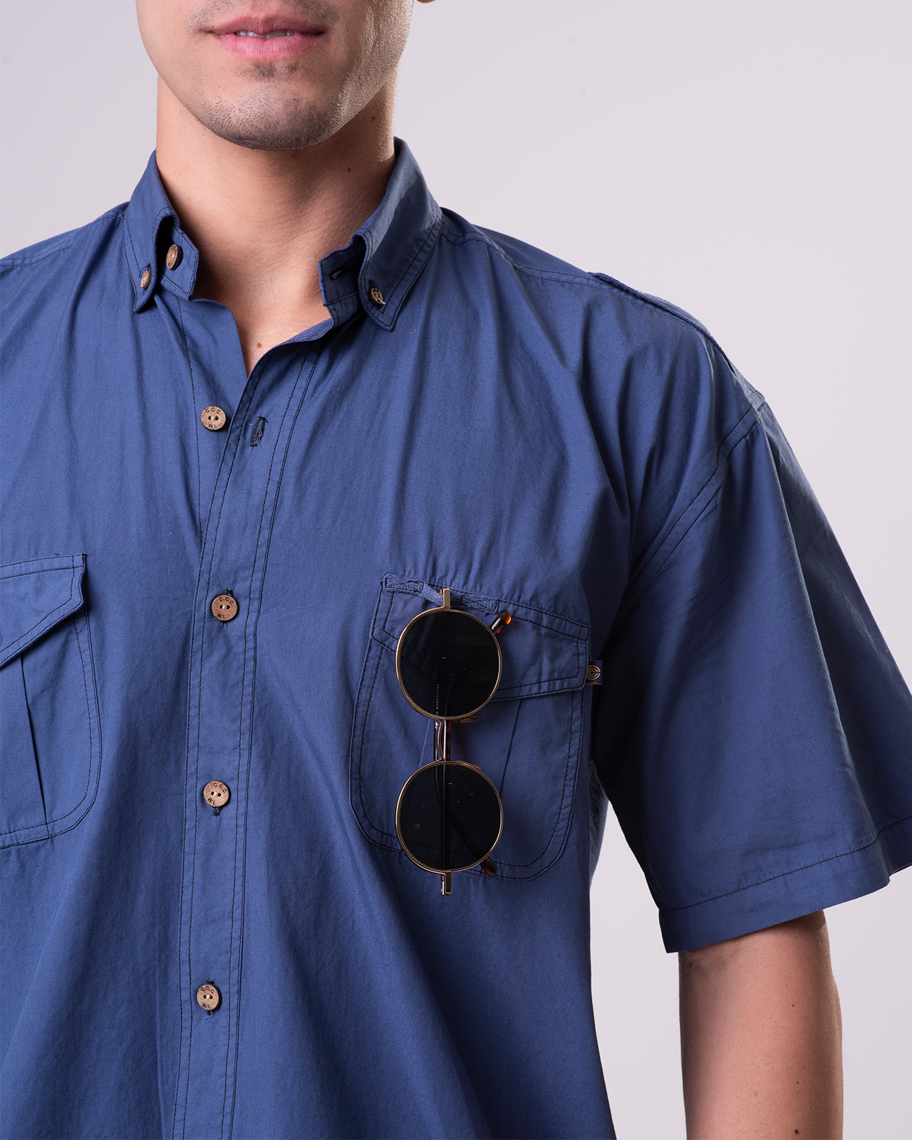 This tropical weight, breathable 100% Mercerized Organic Cotton-Voile fabric is paradise found for daily wear. The mercerization process causes the yarns to swell adding strength to the yarn fiber giving them a high luster. The reactive dyed silicone washed product offers very subtle washed down color tones with slight contrast color stitching effect throughout. The 7-button placket front, button down collar, double shoulder yoke shirts offers epaulets, classic button-down collar, two front chest pockets, split tails and embroidered logo with embossed coconut buttons. We even have a place to hang your shades on the top of the chest pocket!