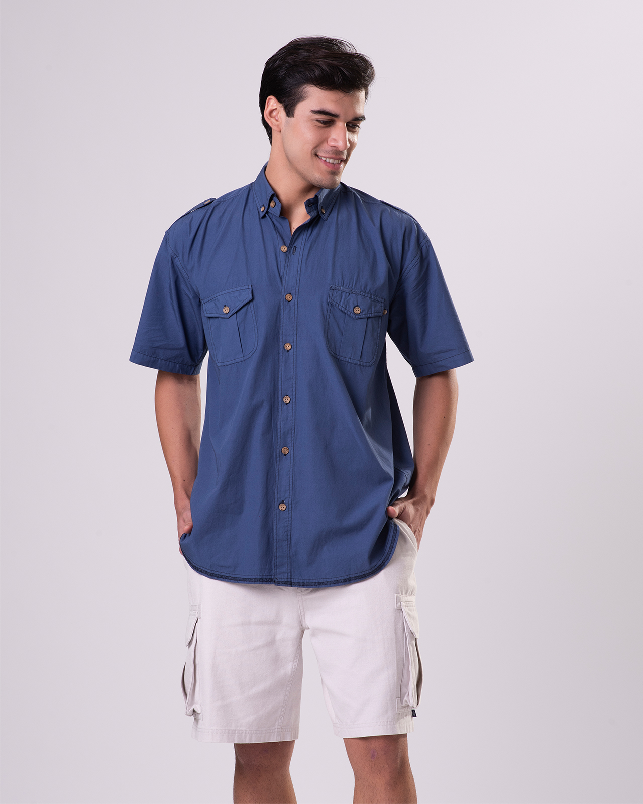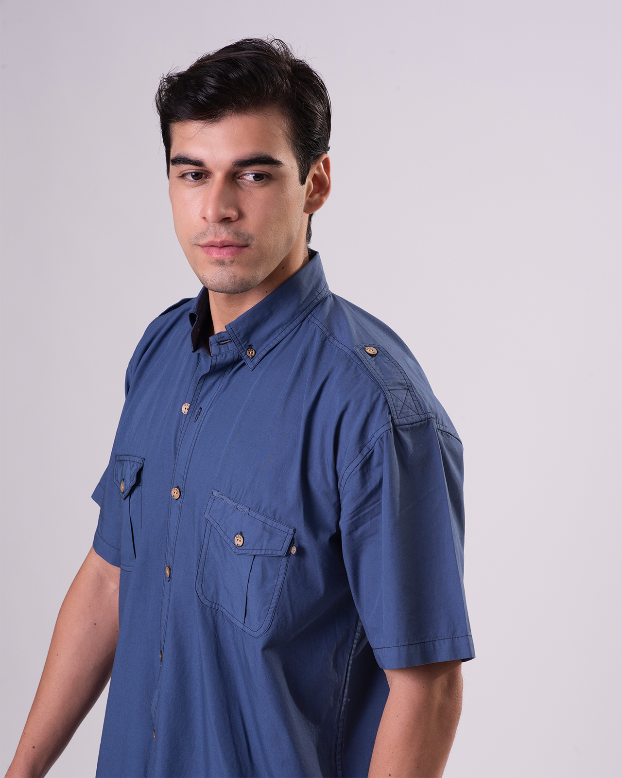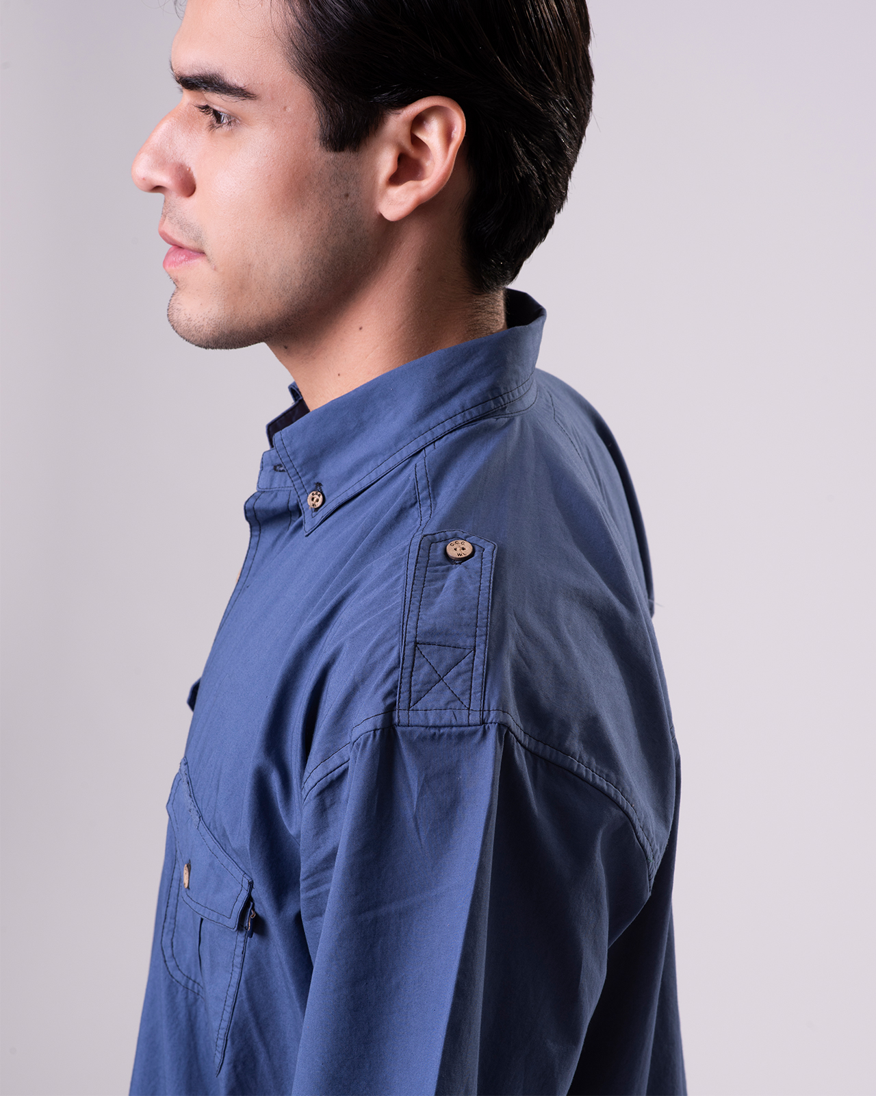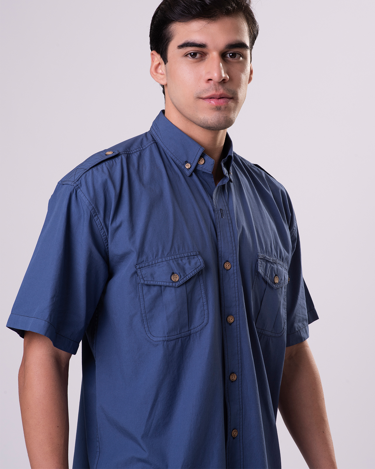 - Two front chest pockets with flap & button closure