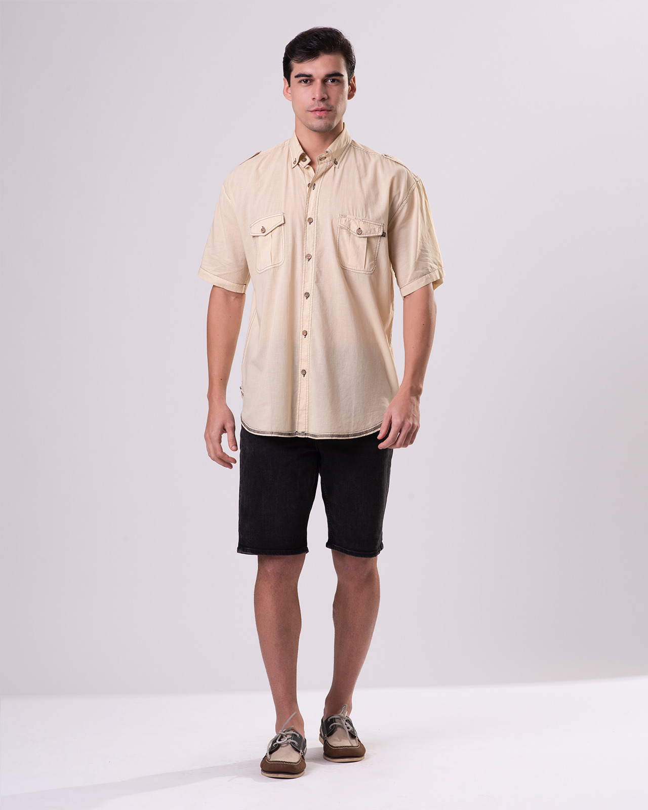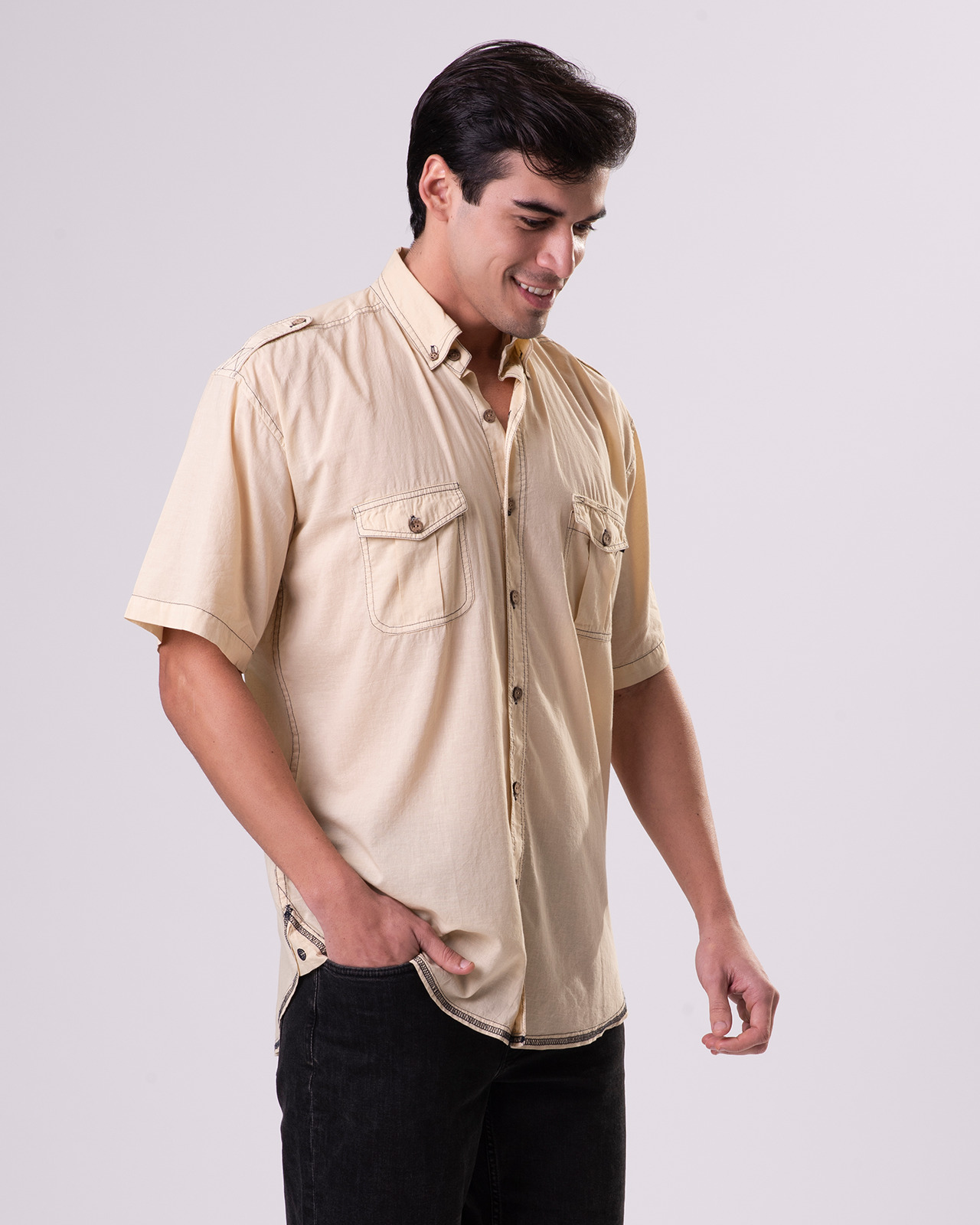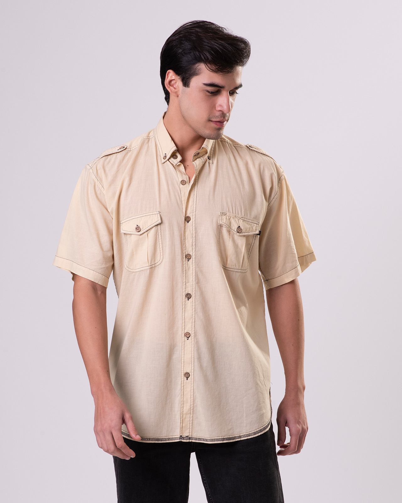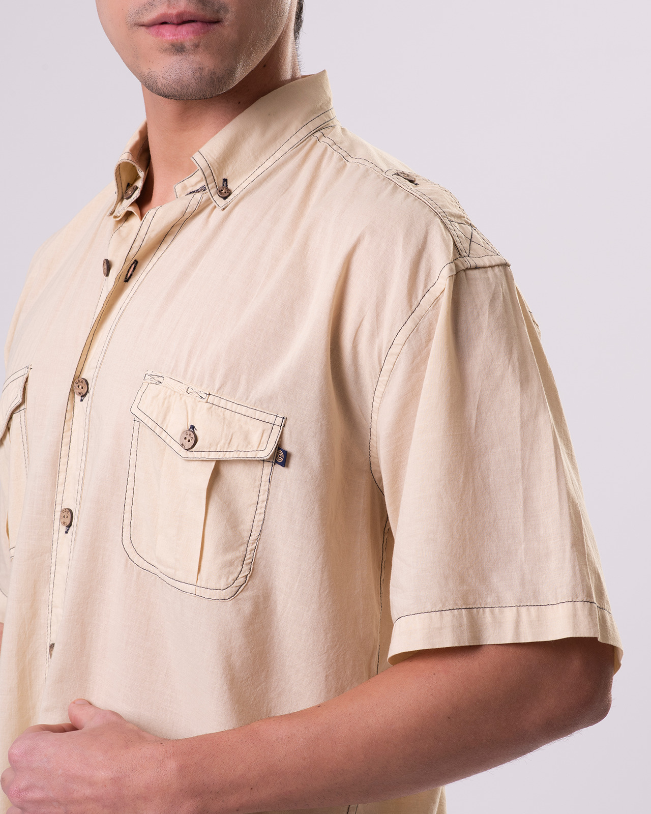 - Two front chest pockets with flap & button closure